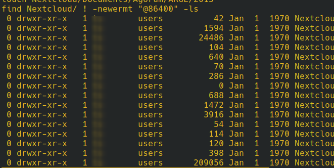 find Nextcloud/ ! -newermt „@86400“ -exec touch {} \;
